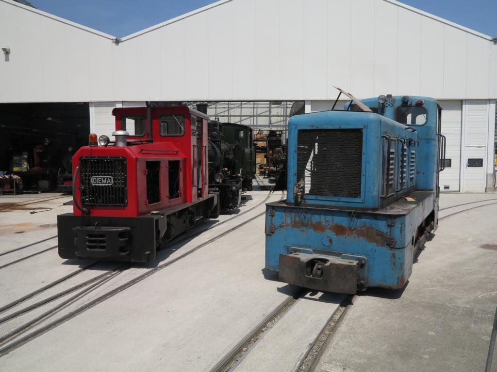 Die beiden grossen Dieselloks stehen gemeinsam vor dem Depot [2015]