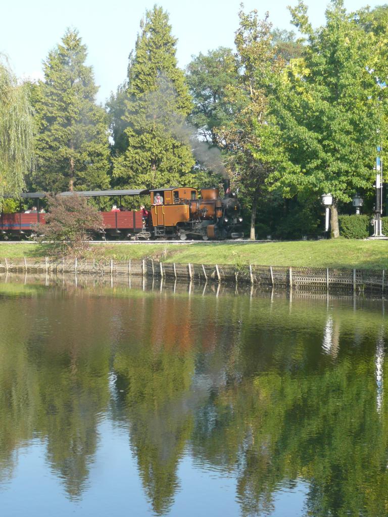 Die Baumschulbahn spiegelt sich im Baumschulsee [26. September 2008]